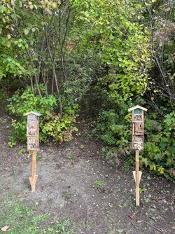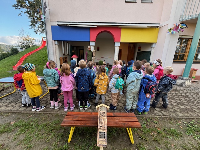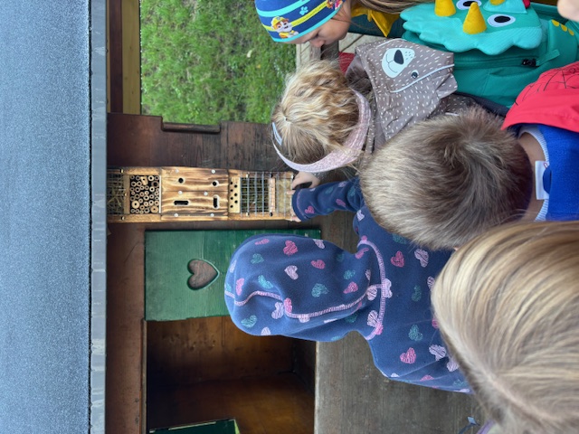 Am 01.10.2025 haben wir mit unserer Waldpädagogin Conny die Insektenhotels im Garten aufgestellt.